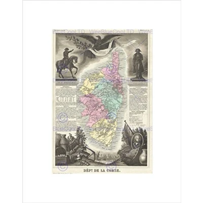 Wee Blue Coo Map Illustrated Antique Levasseur Corsica Wall Art Print