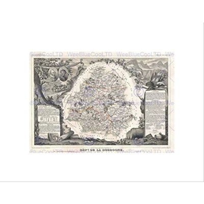 Wee Blue Coo Map Illustrated Antique Levasseur Dordogne Wall Art Print