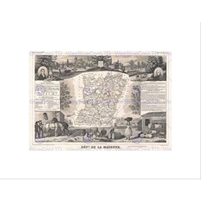 Wee Blue Coo Map Illustrated Antique Levasseur Mayenne Wall Art Print