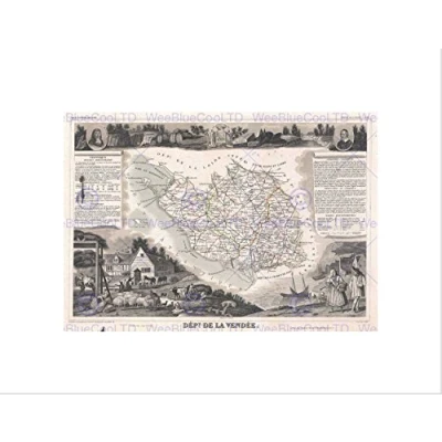 Wee Blue Coo Map Illustrated Antique Levasseur Vendee Wall Art Print
