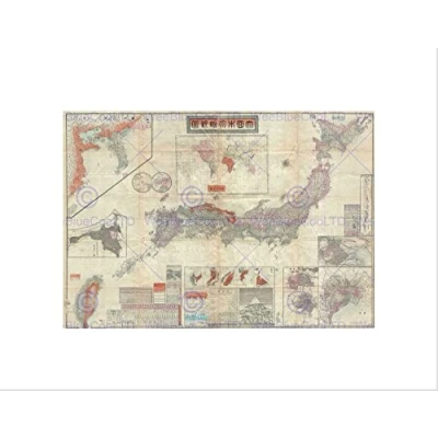 Wee Blue Coo Map Illustrated Antique Meiji Imperial Japan Wall Art Print