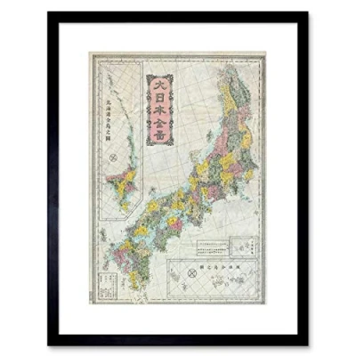Wee Blue Coo MAP ILLUSTRATED ANTIQUE MEIJI JAPAN BLACK FRAMED ART PRINT B12X4963