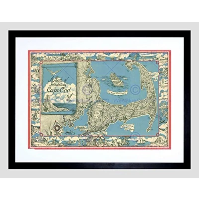 Wee Blue Coo MAP ILLUSTRATED ANTIQUE MILLER CAPE COD FRAMED ART PRINT B12X4965