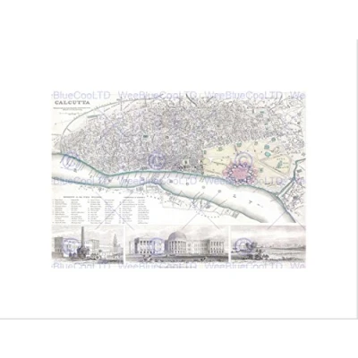 Wee Blue Coo Map Illustrated Antique Sduk Calcutta Wall Art Print