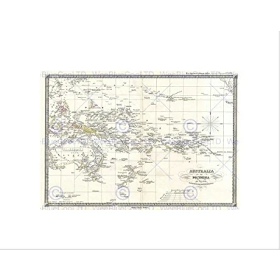 Wee Blue Coo Map Illustrated Antique Spruner Australia Polynesia Art Wall Print