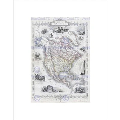 Wee Blue Coo Map Illustrated Antique Tallis North America Wall Art Print
