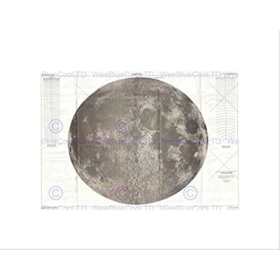 Wee Blue Coo Map Illustrated Antique Usgs Lunar Ray Moon Wall Art Print