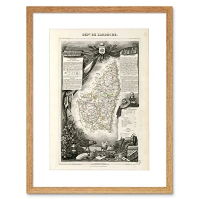 Wee Blue Coo Map Old France Levasseur Ardeche Department Framed Wall Art Print