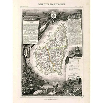 Wee Blue Coo MAP OLD FRANCE LEVASSEUR ARDECHE DEPARTMENT POSTER ART PRINT
