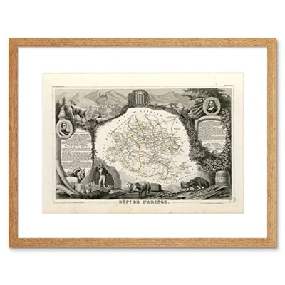 Wee Blue Coo Map Old France Levasseur Ariege Department Framed Wall Art Print