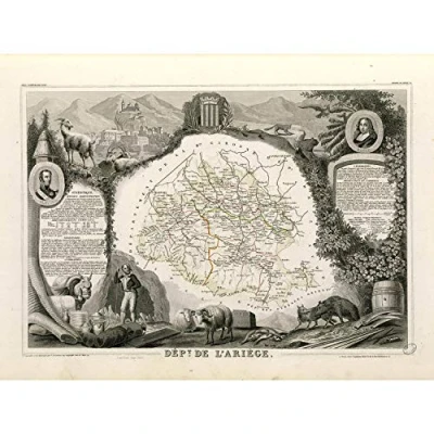 Wee Blue Coo MAP OLD FRANCE LEVASSEUR ARIEGE DEPARTMENT POSTER ART PRINT