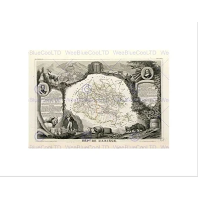 Wee Blue Coo Map Old France Levasseur Ariege Department Wall Art Print