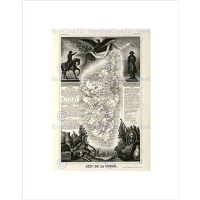 Wee Blue Coo MAP OLD FRANCE LEVASSEUR CORSICA DEPARTMENT BLACK FRAMED ART PRINT B12X3623