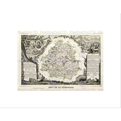 Wee Blue Coo MAP OLD FRANCE LEVASSEUR DORDOGNE DEPARTMENT BLACK FRAMED ART PRINT B12X3625