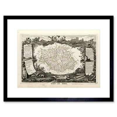 Wee Blue Coo Map Old France Levasseur Gers Department Picture Framed Wall Art Print