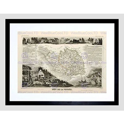 Wee Blue Coo Map Old France Levasseur Vendee Department Framed Wall Art Print
