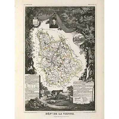 Wee Blue Coo Map Old France Levasseur Vienne Department Art Print Poster Wall Decor 12X16 Inch