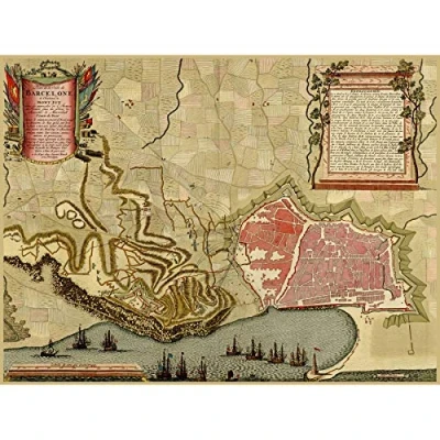 Wee Blue Coo Map Old Vintage Barcelona Spain Farmland Surrounds Canvas Print
