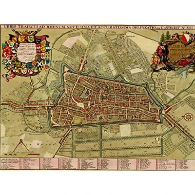 Wee Blue Coo Map Old Vintage City Plan Utrecht Netherlands Surrounds Canvas Print