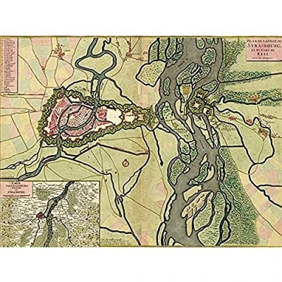 Wee Blue Coo Map Old Vintage Strasbourg France River City Inset Large Art Print Poster Wall Decor 18x24 inch