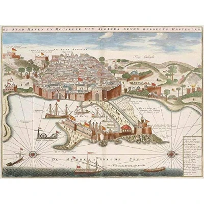 Wee Blue Coo Map Port City Alger Algiers Algeria Africa Harbour Art Print Poster Wall Decor 12X16 Inch