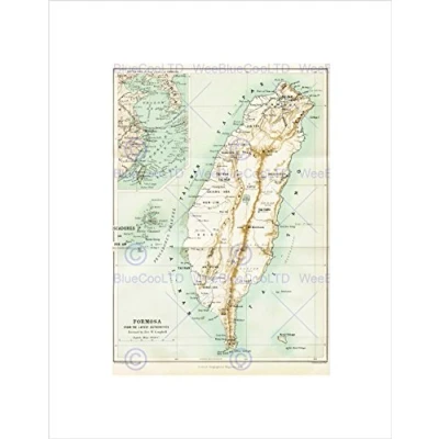 Wee Blue Coo Map Taiwan Formosa Vintage History Picture Wall Art Print