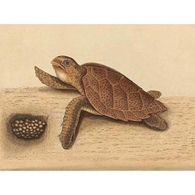 Wee Blue Coo Mark Catesby English Hawks Bill Turtle Testudo Zoology Art Print Poster Wall Decor 12X16 Inch