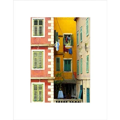 Wee Blue Coo Mediterranean Window Shutters Colourful House Wall Art Print