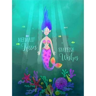 Wee Blue Coo Mermaid Kisses Starfish Wishes Canvas Wall Art Print