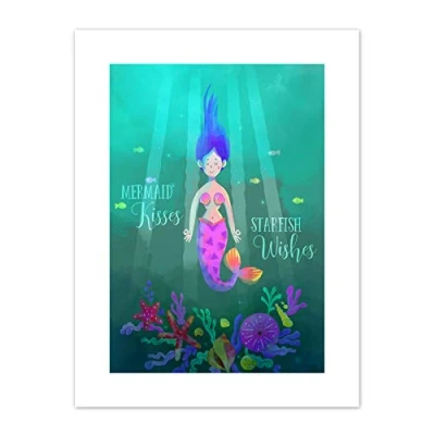 Wee Blue Coo Mermaid Kisses Starfish Wishes Canvas Wall Art Print