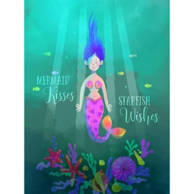 Wee Blue Coo Mermaid Kisses Starfish Wishes Canvas Wall Art Print