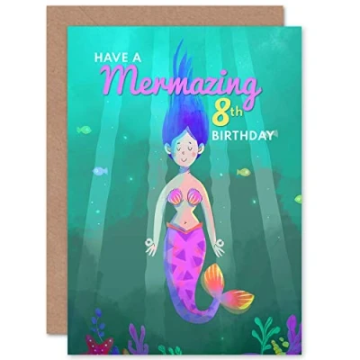 Wee Blue Coo Mermaid Pink Mermazing Birthday 8th Greetings Card