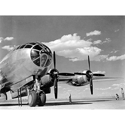 Wee Blue Coo Military Air Plane Bomber B 29 Propellor Cockpit Black White Art Print Poster Wall Decor 12X16 Inch
