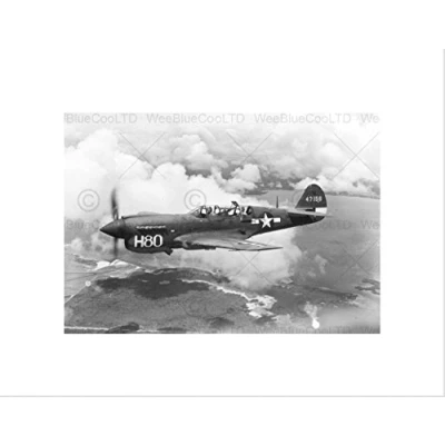 Wee Blue Coo Military Air Plane Vintage Fighter Jet Black White P 40 Wall Art Print