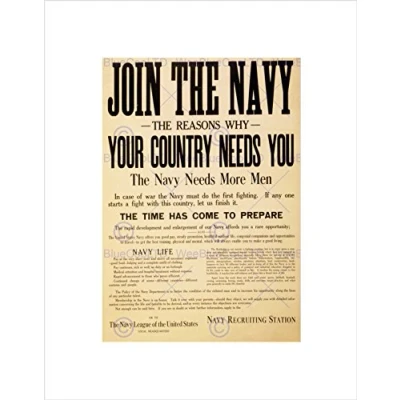 Wee Blue Coo Military Recruit Enlist Navy Join Country Needs You Wall Art Print