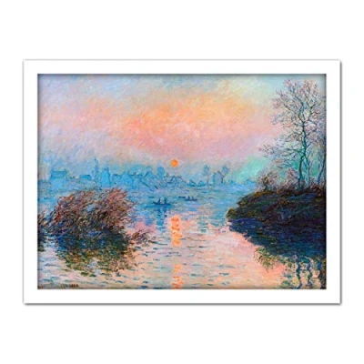 Wee Blue Coo Monet Sunset Seine Lavacourt Winter Artwork Framed Wall Art Print 18X24 Inch