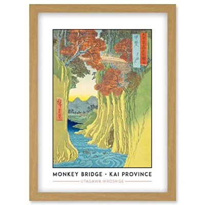 Wee Blue Coo Monkey Bridge Kai Province Utagawa Hiroshige Japanese Woodblock Classic Collection Artwork Framed Wall Art Print A4
