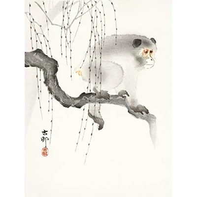 Wee Blue Coo Monkey Tree Branch Ohara Koson Art Print Canvas Premium Wall Decor Poster