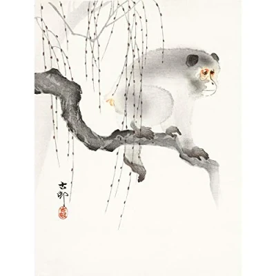 Wee Blue Coo Monkey Tree Branch Ohara Koson Art Print Poster Wall Decor