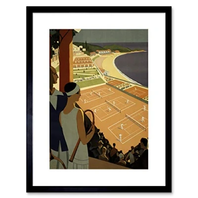Wee Blue Coo Monte Carlo Monaco Tennis Vintage Artwork Framed Wall Art Print 9X7 Inch