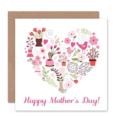 Wee Blue Coo Mother's Day Pretty Pink Stuff Floral Flower Bird Love Heart Art Greeting Card