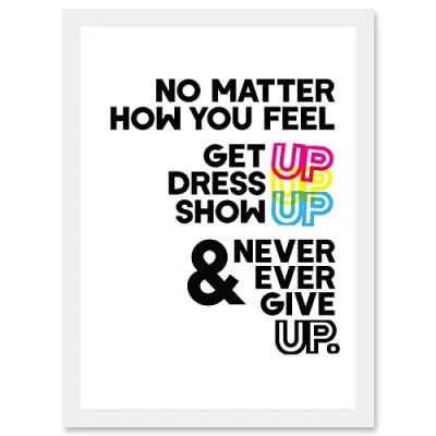 Wee Blue Coo Motivational Get Up Dress Show Never Give Typography Artwork Framed Wall Art Print A4