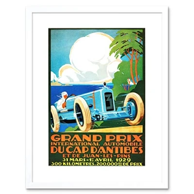 Wee Blue Coo Motor Sport Grand Prix France Automobile Car Vintage Framed Wall Art Print