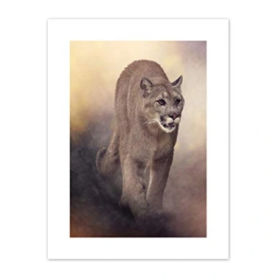 Wee Blue Coo Mountain Lion Cougar Illustration Art Print Canvas Premium Wall Decor Poster