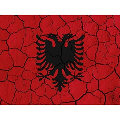 Wee Blue Coo MP PAINTING ABSTRACT FLAG CRACKED CONCRETE ALBANIA BLACK EAGLE CREST RED 18x24 INCH ART POSTER PRINT PICTURE LV6298