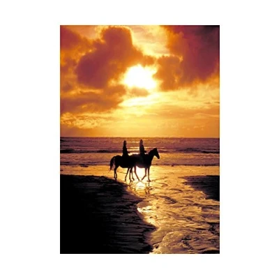 Wee Blue Coo Mp Photo Beach Horses Sunset Ocean Sand Waves Picture Wall Art Print