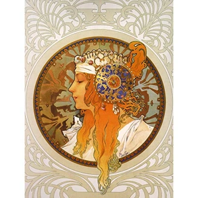 Wee Blue Coo Mucha Byzantine Head Blonde Headdress Large Wall Art Poster Print Thick Paper 18X24 Inch