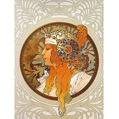 Wee Blue Coo Mucha Byzantine Head Blonde Headdress Unframed Art Print Poster Wall Decor 12X16 Inch