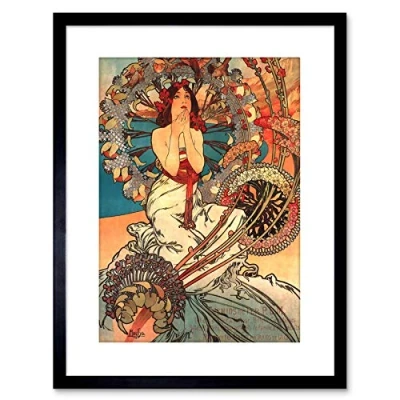 Wee Blue Coo Mucha Nouveau Woman Spring Flora Picture Photo Framed Wall Art Print