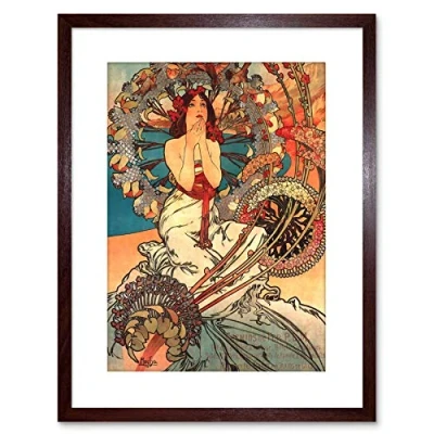 Wee Blue Coo Mucha Nouveau Woman Spring Flora Picture Photo Framed Wall Art Print